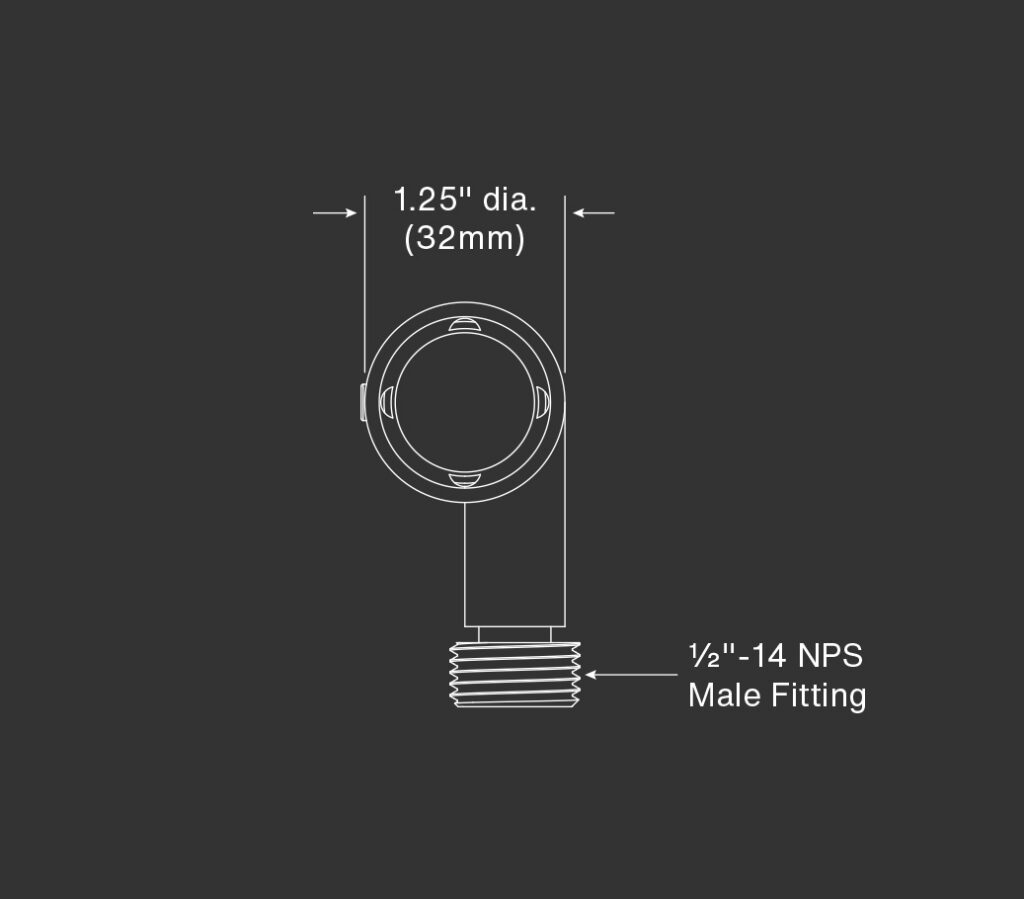 Mounts using ½”-14 NPS male fitting compatible with all HK Lighting mounting devices. Ships with extended 36″ wiring leads with two Small (Blue) LightingShrink® connectors to ensure fast and watertight connections. (See page 4 of Spec Sheet for details)